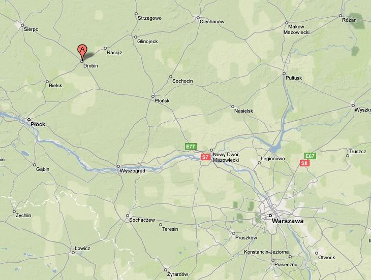 (Warszawa). You can see that Drobin is Northwest of Warsaw and